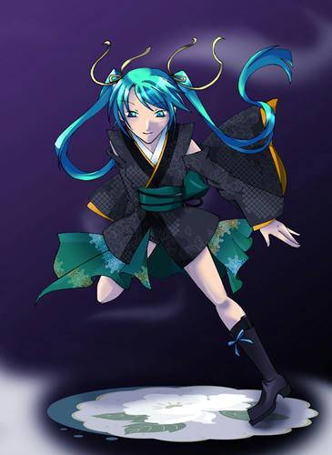みっくみくです。 初めて描いたのに創作着物着せたら誰かワカンネ。